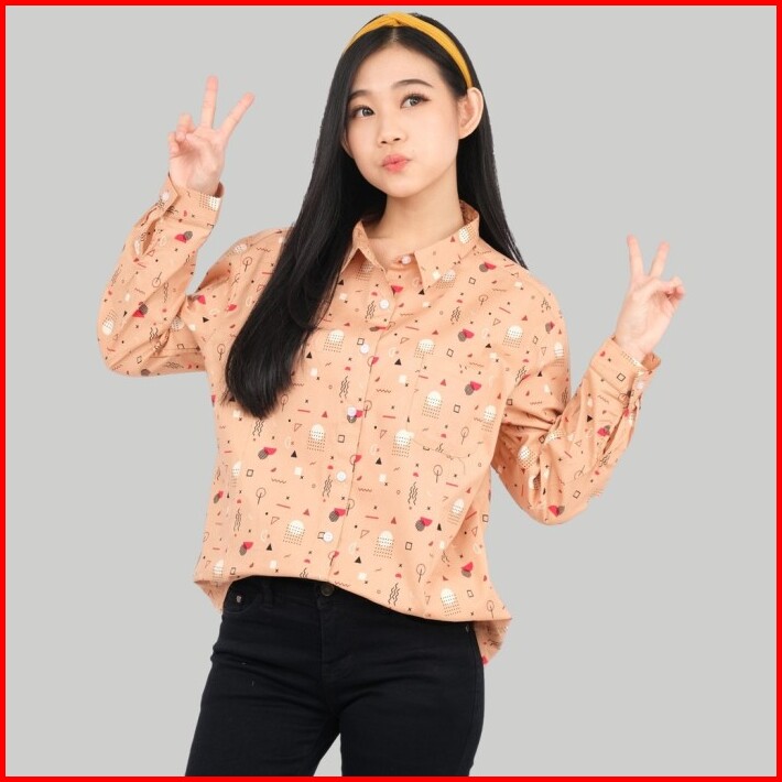 Monellina 50117 Baju Kemeja Atasan Xxl Jumbo Lengan Panjang Wanita