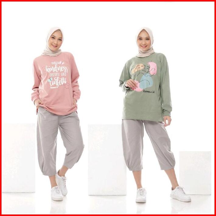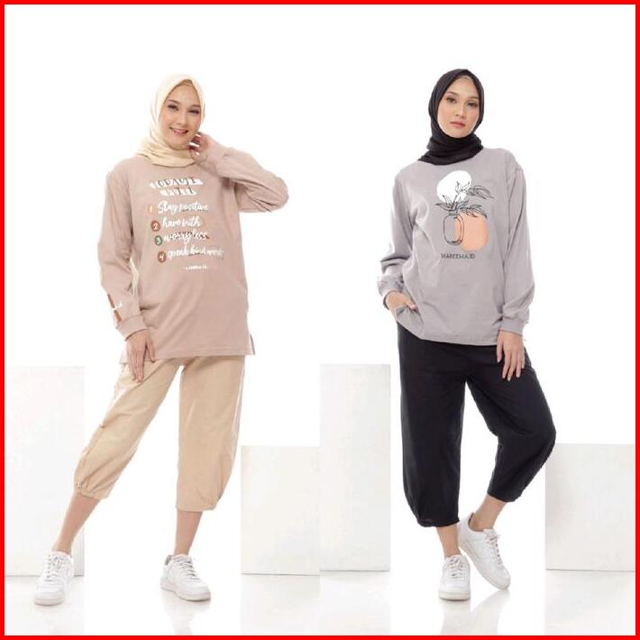 Atasan Lengan Panjang Wanita Muslim Kaos Katun Polos Combed Nyaman Tebal Cewek Dewasa Sablon Rib Baju Oversize T-shirt