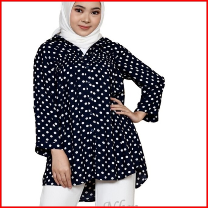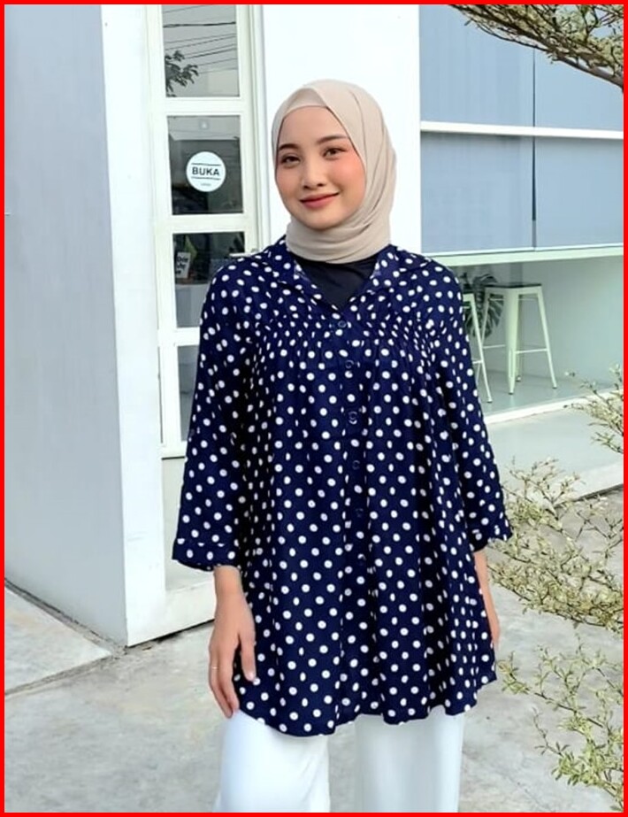 Nhm Kemeja Wanita Rayon Oversize Baju Atasan Jumbo Motif Polka