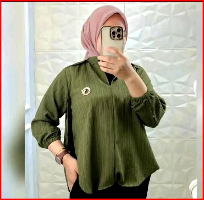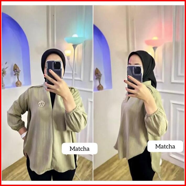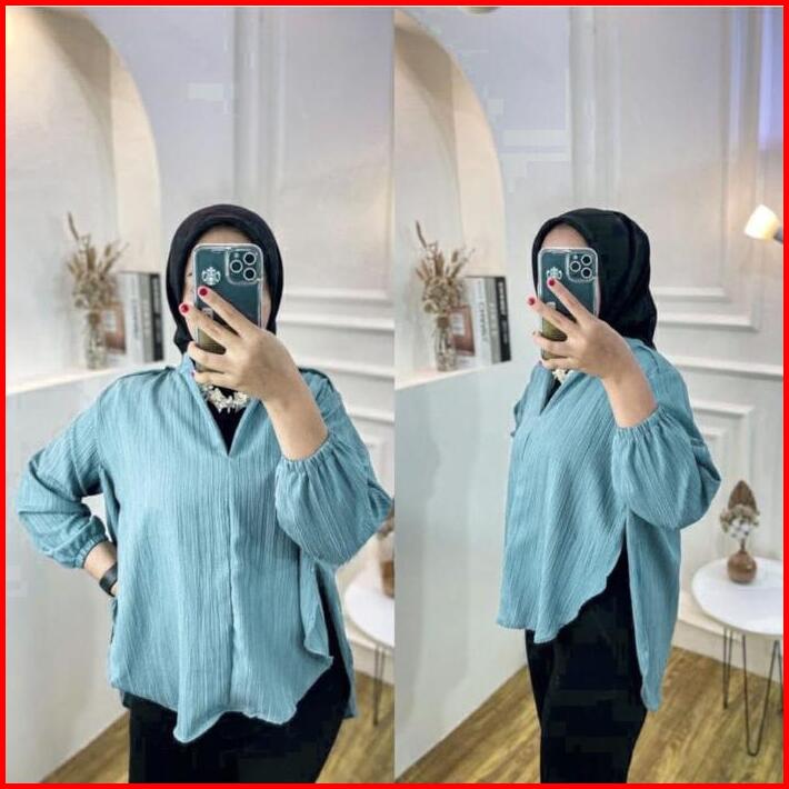 Kemeja Wanita Kekinian Terbaru 2023 Blouse Lady Crush Kemeja V-neck Style Korea Atasan Panjang Oversize Baju Cewek Top B