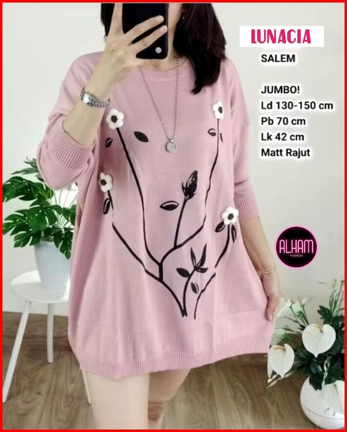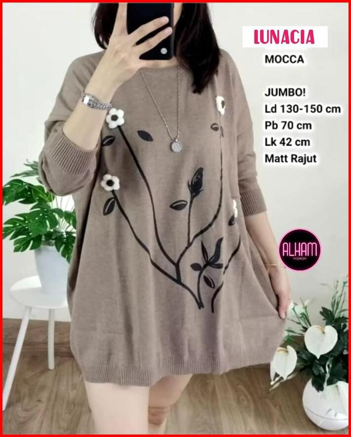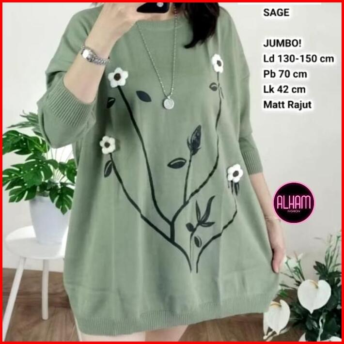Blouse Rajut Jumbo Ld 130 Korean Style Kekinian Pakaian Wanita Baju Atasan Lengan Panjang