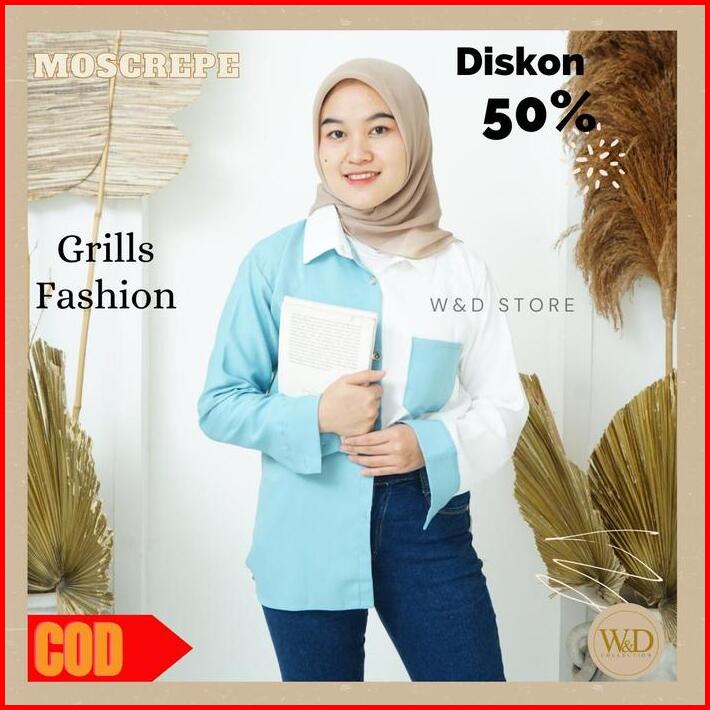 Kemeja Wanita Kekinian Korean Style Atasan Baju Oversize Panjang Dewasa Casual Cewek Remaja