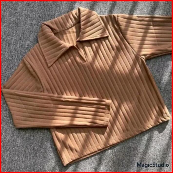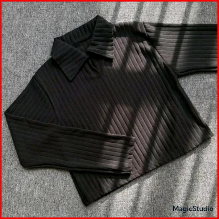 Baju Atasan Knit Hornets Crop Lengan Panjang Wanita Masakini Santai Kerah Lembut Nyaman Top Knitwear Sweater Cardigan Ga