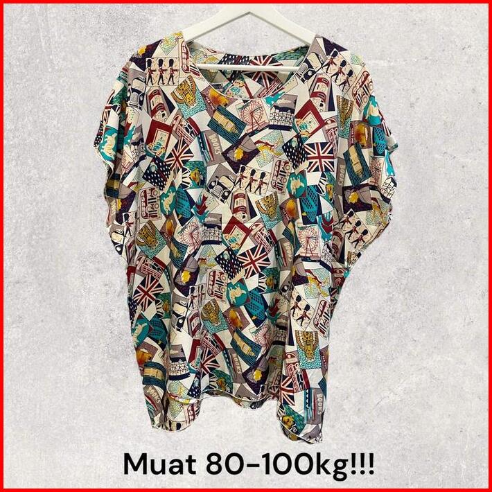 Baju Blouse Neci Jumbo Fit To Xxxxl Sj Motif Real Pict Santai Rayon Wanita Atasan