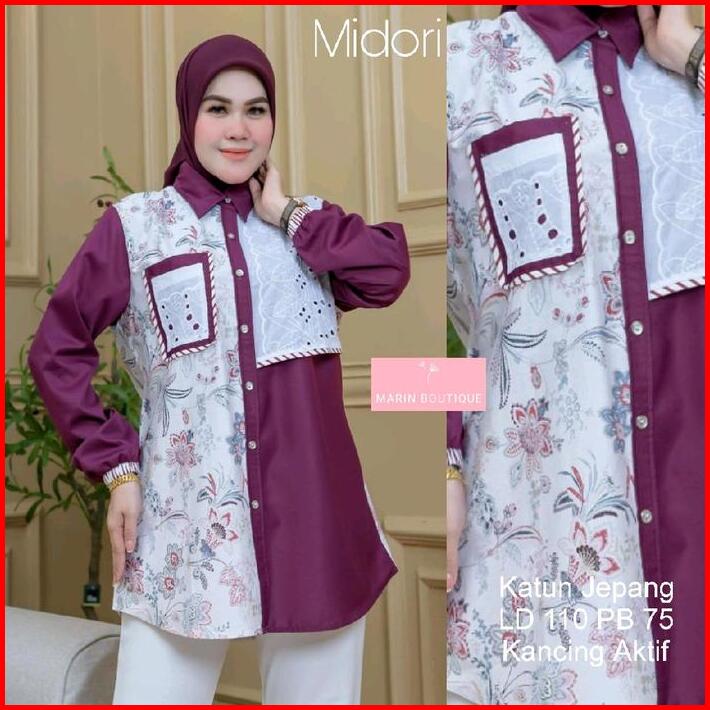 Midori Rummi Mola Kemeja Wanita Katun Jepang Baju Atasan Muslim Panjang Dewasa Motif Casual