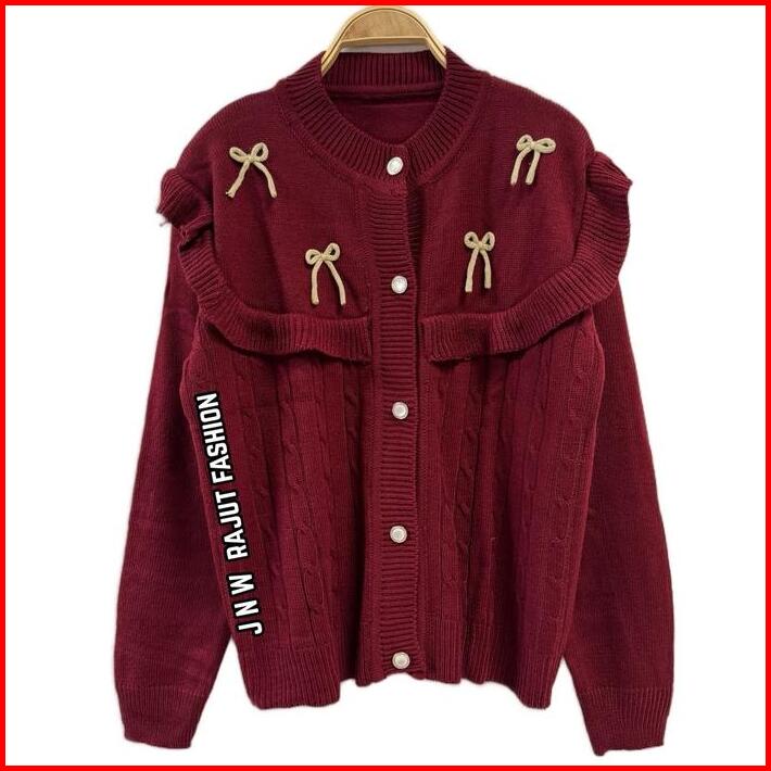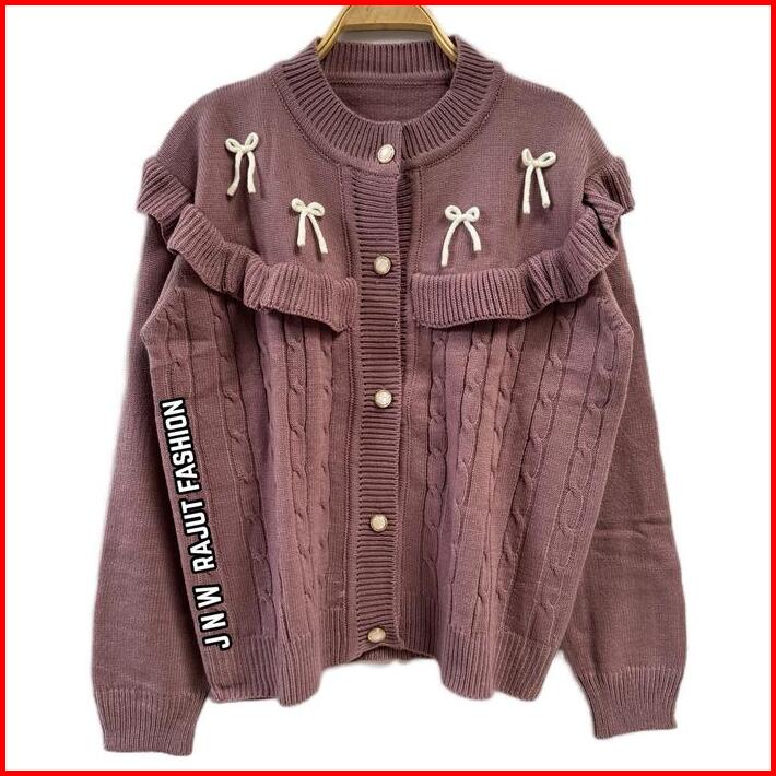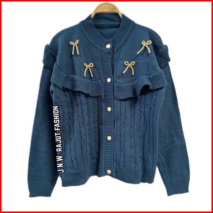 Dianra Cardigan Knitwear Ruffle Pita Cablle Atasan Baju Rajut Wanita Lengan Panjang Cardigan Korea