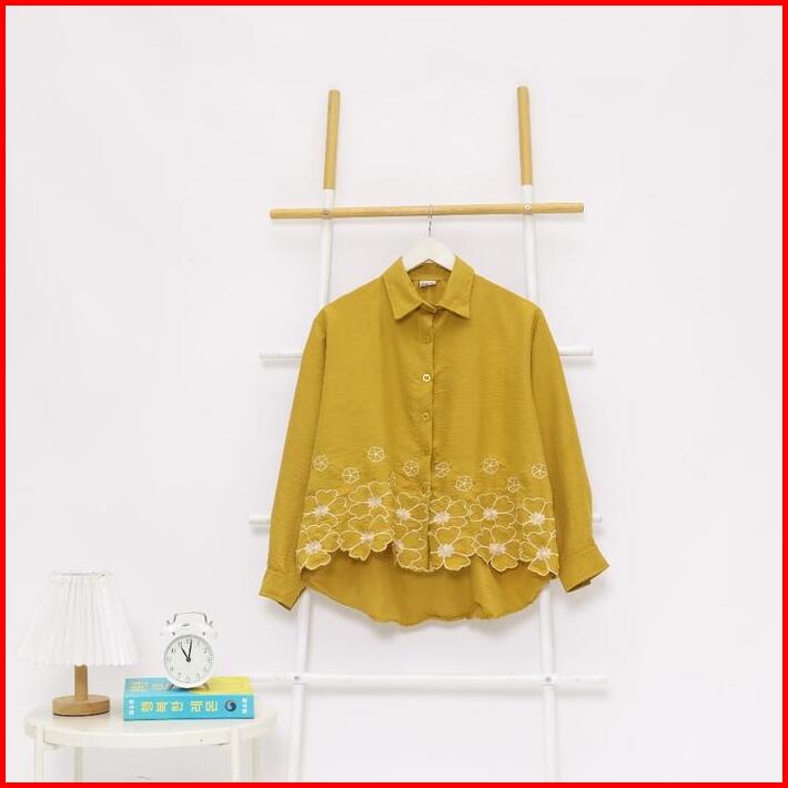 Peachbello Kemeja Wanita Bordir Busui Friendly Baju Shakila Atasan Panjang Dewasa Kerja Casual Oversize