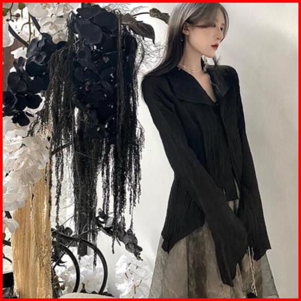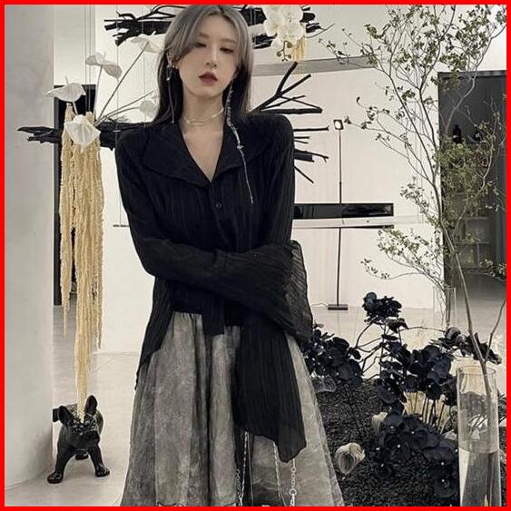 Baju Kemeja Hitam Fashion Korea Long Sleeve Kancing Hidup Atasan Wanita Hitam Casual Lengan Panjang Kekinian M512