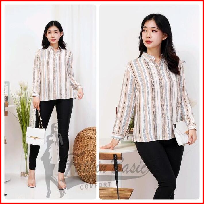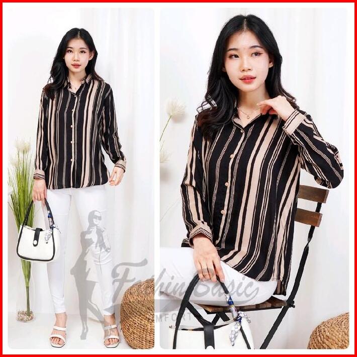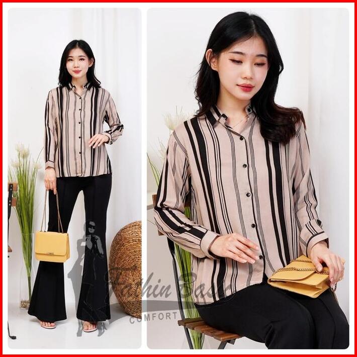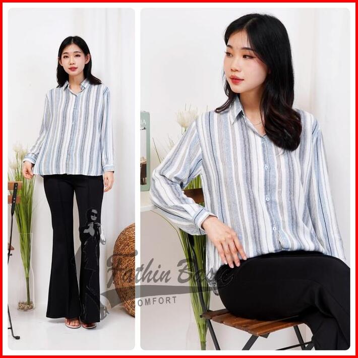Fathinbasic Kemeja Blouse Baju Atasan Wanita Motif Rayon Kekinian Lengan Panjang