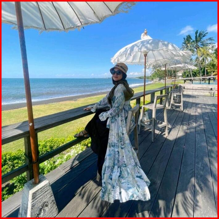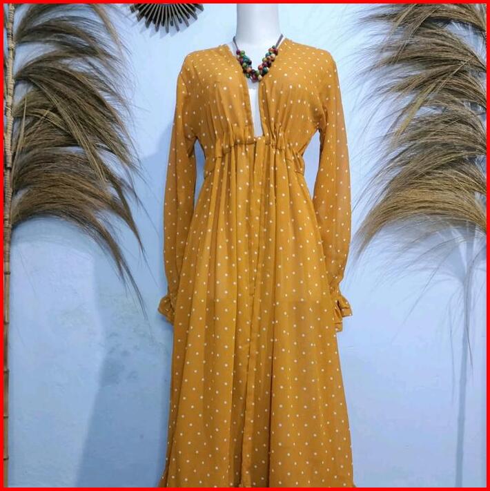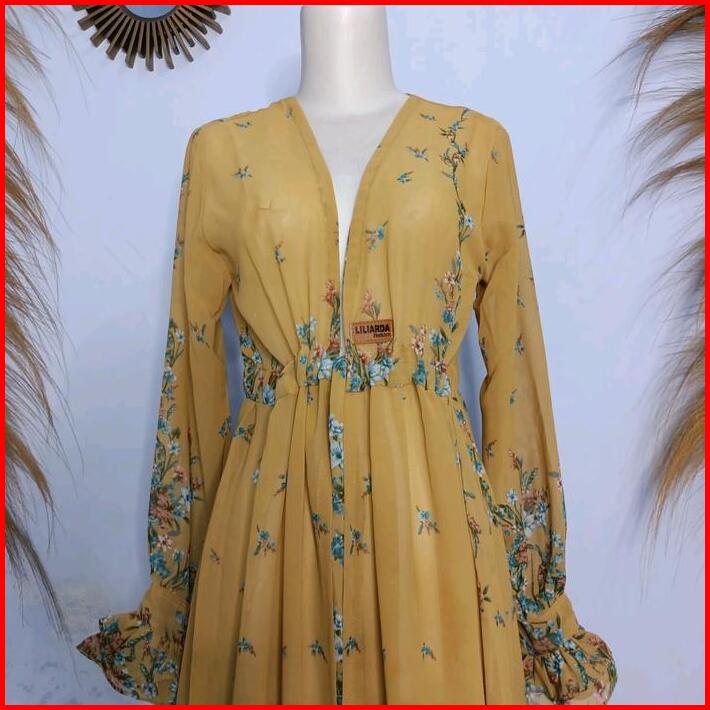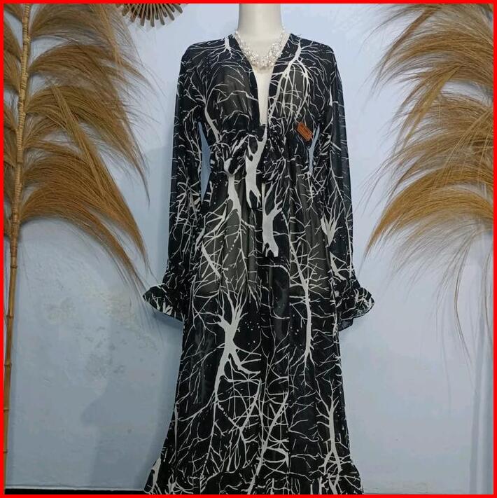 Outer Panjang Motif Bunga Long Outer Ceruty Serut Muslim Wanita Cardigan Hitam Atasan