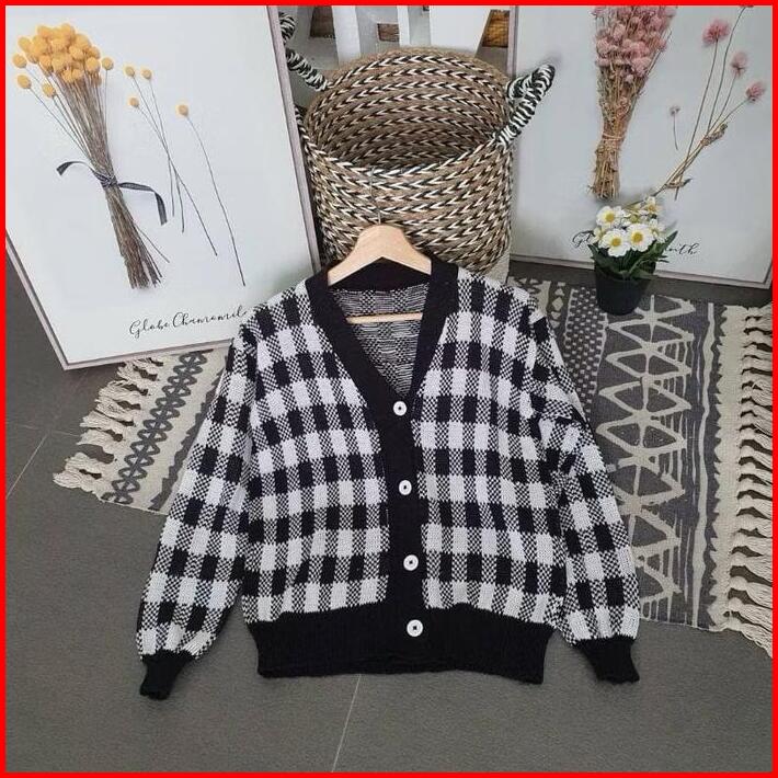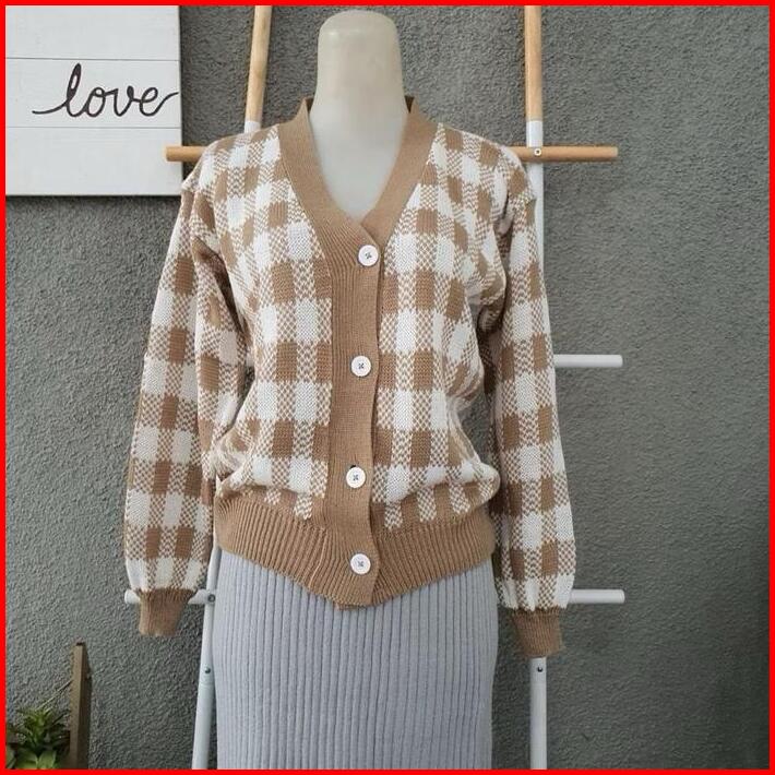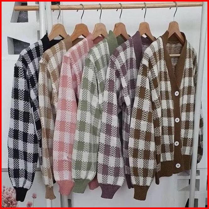 Sweater Cardigan Rajut Acrilic Motif Kotak Kotak Cardie Rajut Outerwear Premium Outerwear Atasan Baju Wanita Kardigan Ra