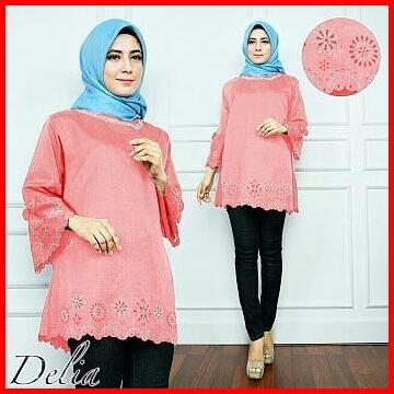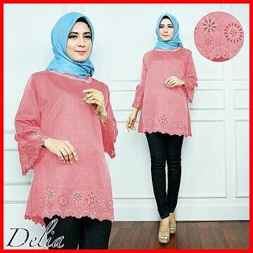 Blouse Delia Lengan Terompet Bahan Balotely Dewasa Muslim Wanita Panjang Kancing Atasan Lily Baju Formal Mewah