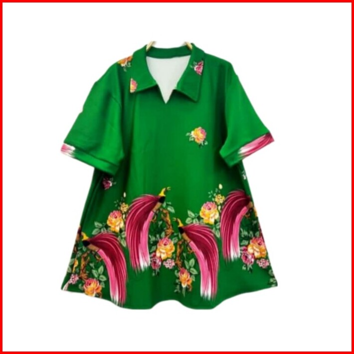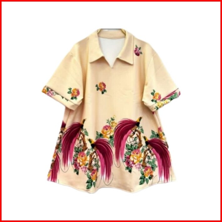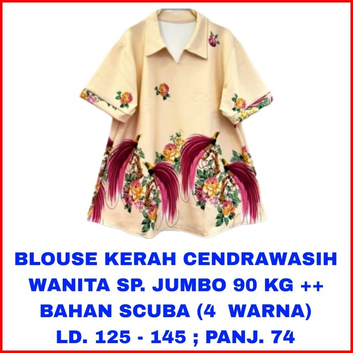 Wk Blouse Kerah Kemeja Wanita Super Jumbo Ld. 125 130 140 145 Motif Cendrawasih Bahan Scuba Baju Atasan Imlek Sincia San