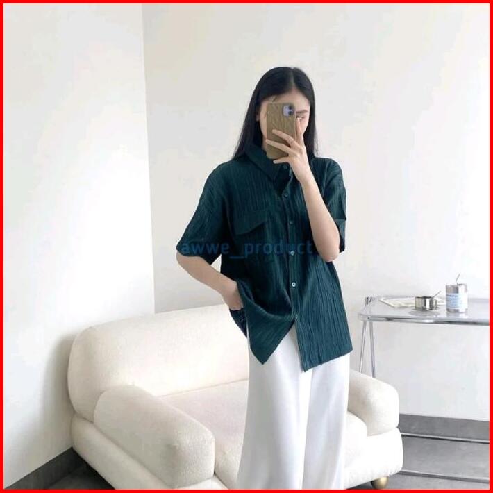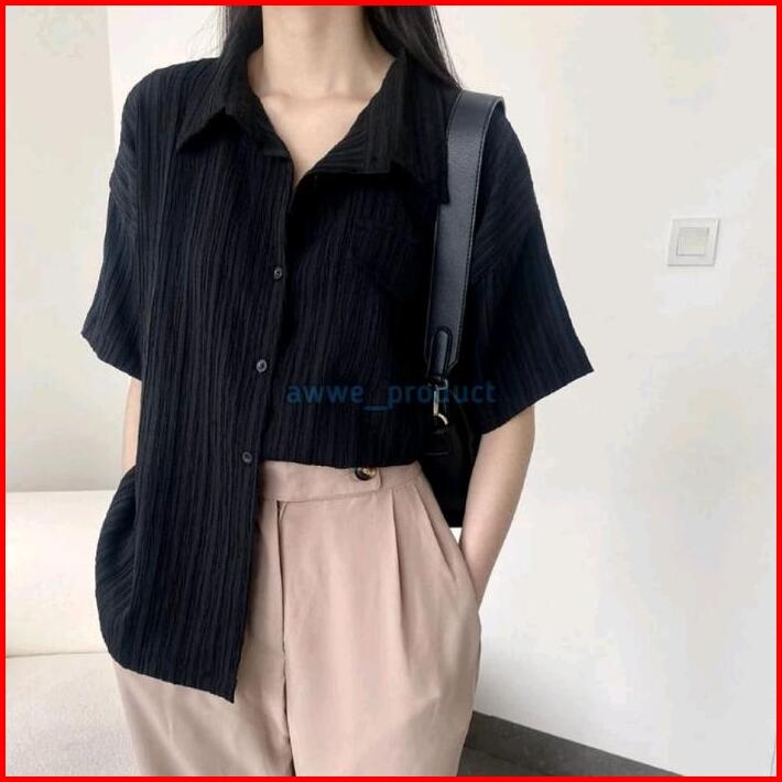Kemeja Wanita Helen Shirt Basic Lengan Pendek Lady Crush Baju Atasan