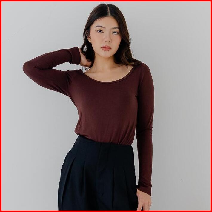 Pluffyschoice Freya U-neck Longsleeve Baju Atasan Wanita Polos Top Basic Cewek Panjang Dewasa Casual