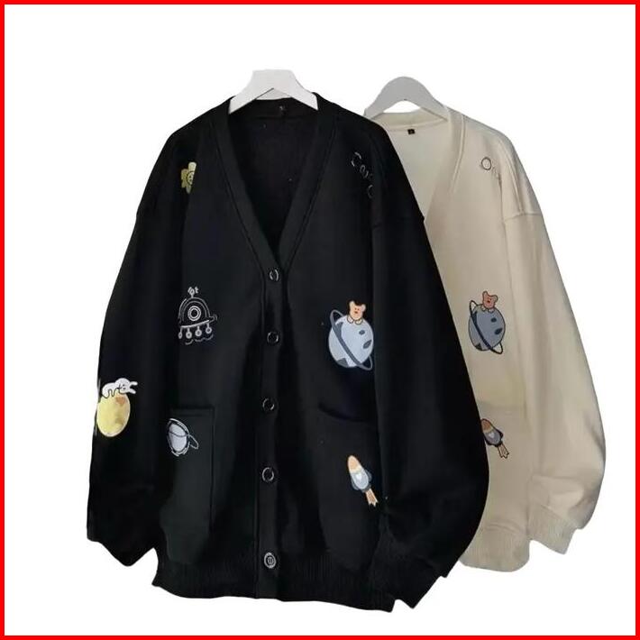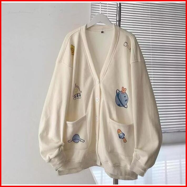 Cardigan Astro Planet Fleece Oversize Kardigan Baju Atasan Wanita Simple Basic Jaket Outer Kancing
