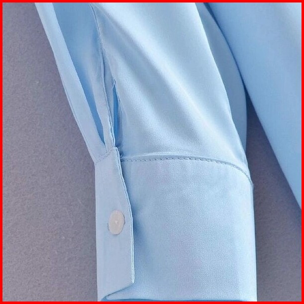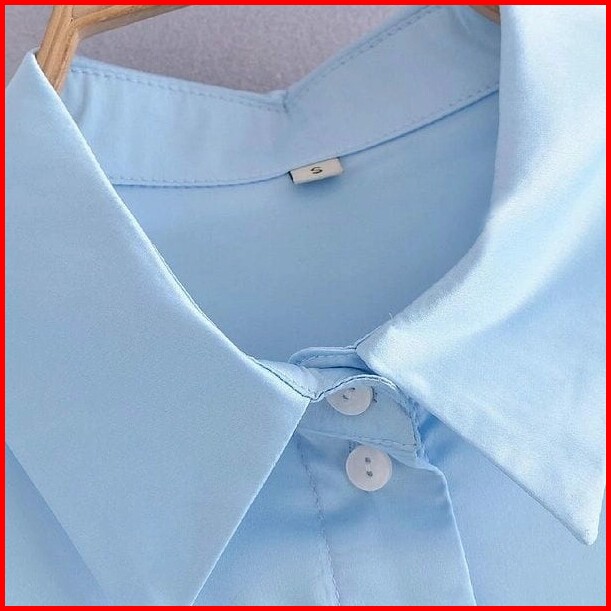 Baju Atasan Kemeja Wanita Polos Silky Biru Simpel Lengan Pendek