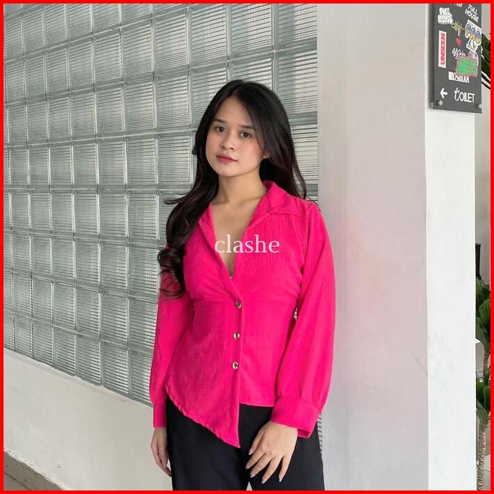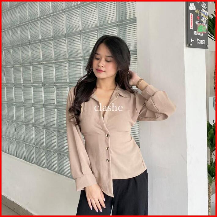 Mia Top Baju Blouse Wanita Atasan Lengan Panjang Crinkle Airflow Anti Lecek Korean Style Kekinian Terbaru Ootd By Clashe