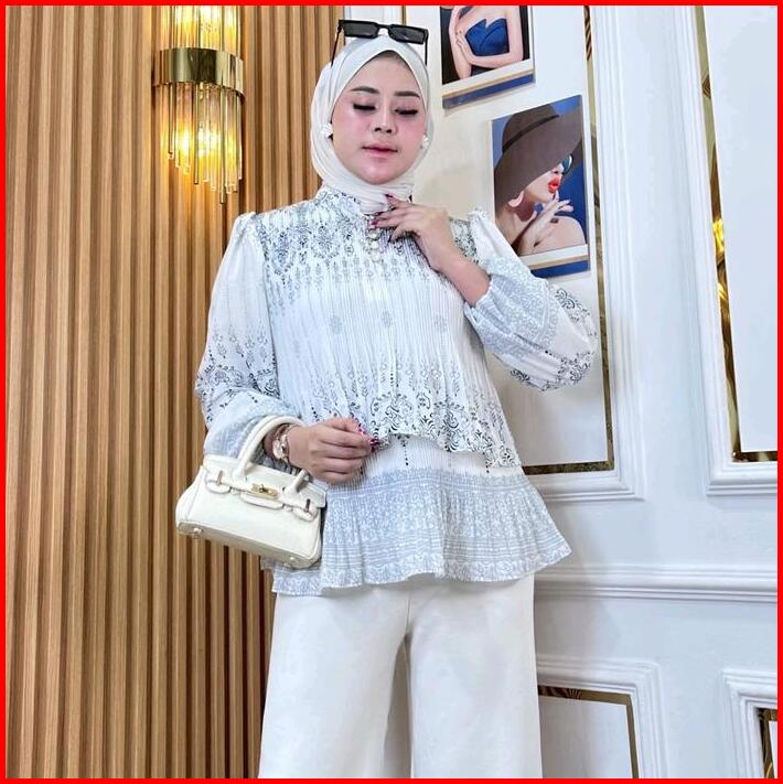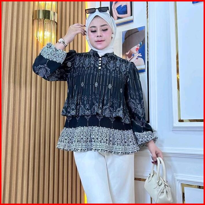 Sulis Blous Atasan Blous Plisket Kekinian Kemeja Motif Cerutty Baby Doll Baju Motiv Bunga Cantik Lengan Panjang Balon Bl