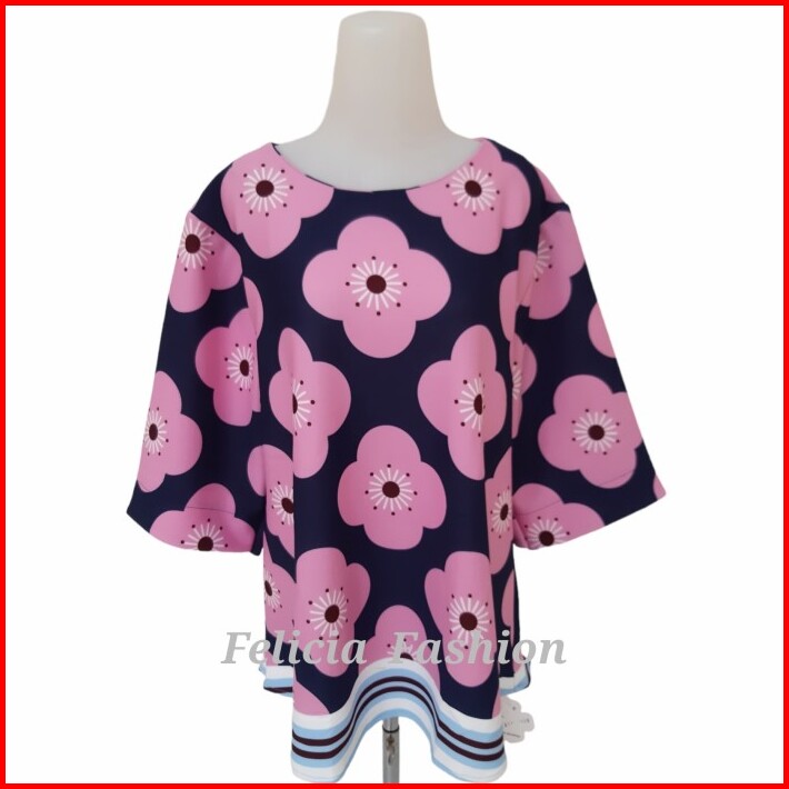 Baju Atasan Wanita Jumbo Blouse Scuba Premium Big Size Motif Bunga 4