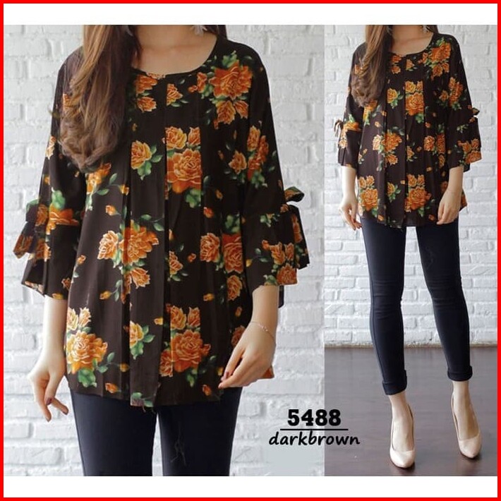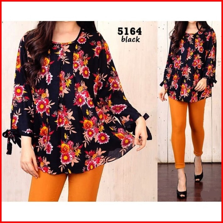 Baju Atasan Wanita Big Size Blouse Jumbo Flowery Bunga Modern Bigsize