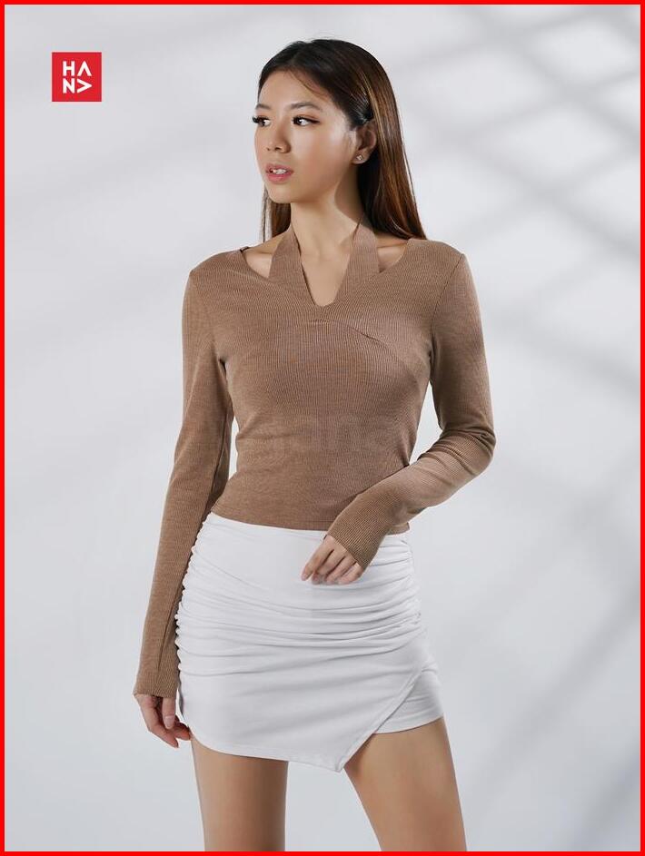 Valerie Rib Long Sleeve Halter V-neck Baju Lengan Panjang V-neck