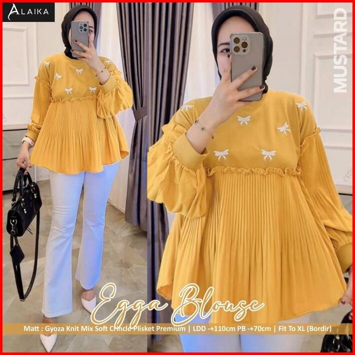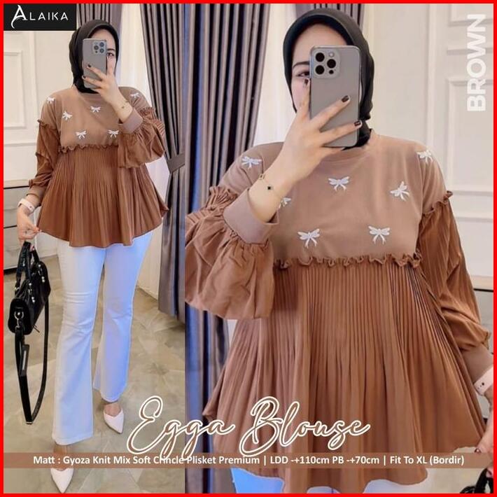 Blouse Plisket Wanita Korean Style Ld 110 Motif Bordir Terbaru Pakaian Wanita Baju Atasan Lengan Panjang