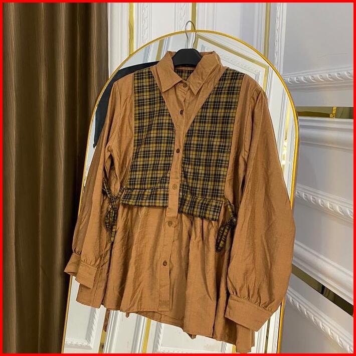 Melvi Kemeja Pollo Linen Mix Katun Wanita Atasan Baju Panjang Oversize Casual Dewasa Kancing Cewek Kerah