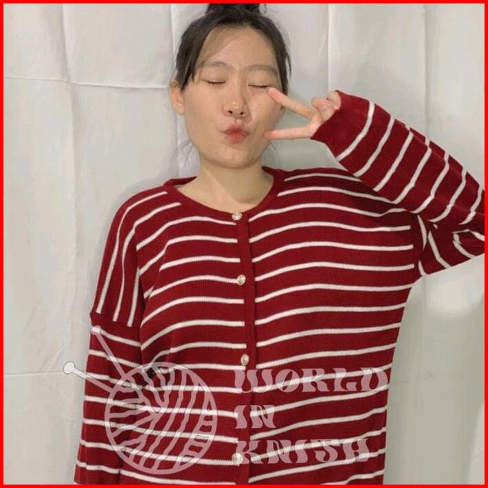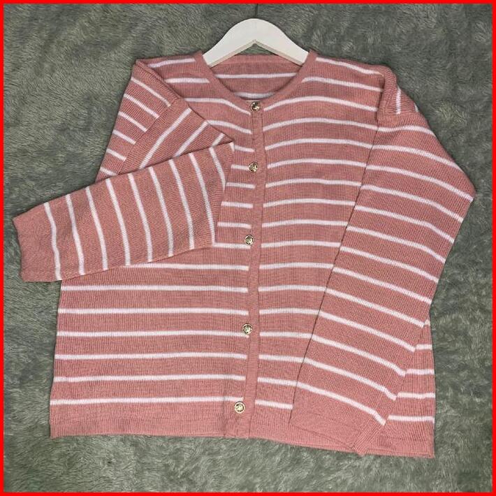 Cardigan Small Strip Oversize Ld 120-130 Crew Neck Setrip Baju Casual Knitwear Panjang Wanita Atasan Stripe Motif