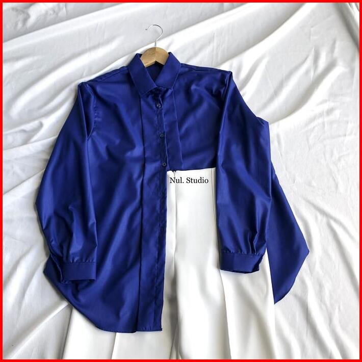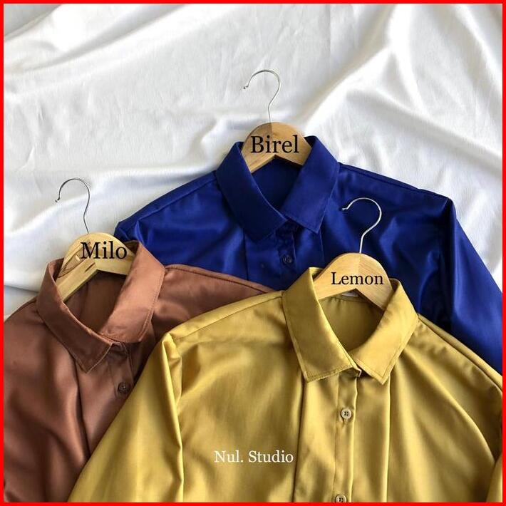 Shena Kemeja Katun Toyobo Nyaman Tebal Kerah Panjang Wanita Baju Hitam Atasan Linen Kancing