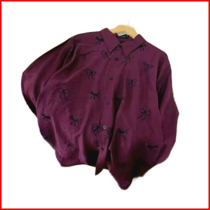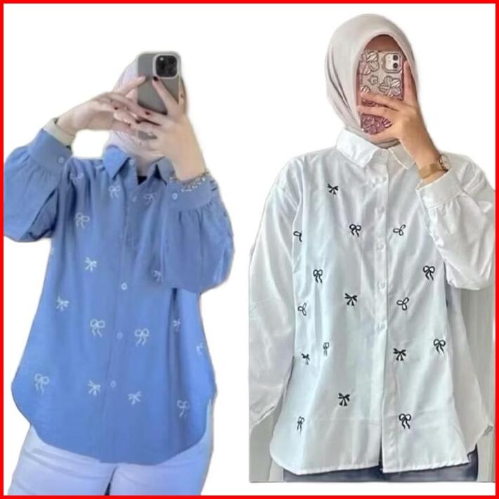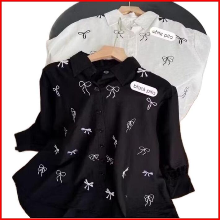 Baju Wanita Luna Atasan Kemeja Blouse Bordir Pita Korean Style Airflow Crinkle