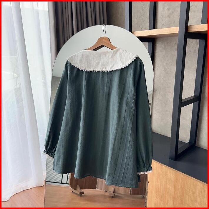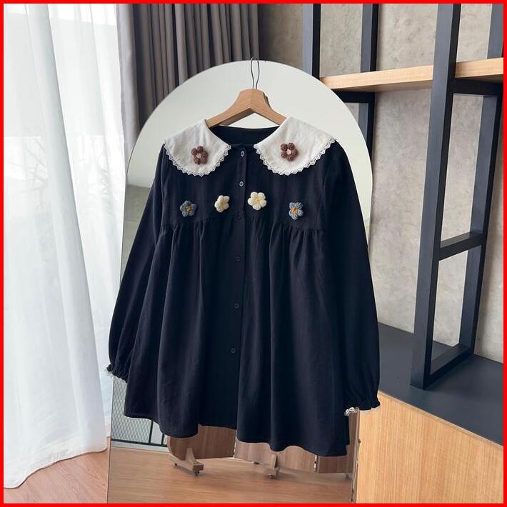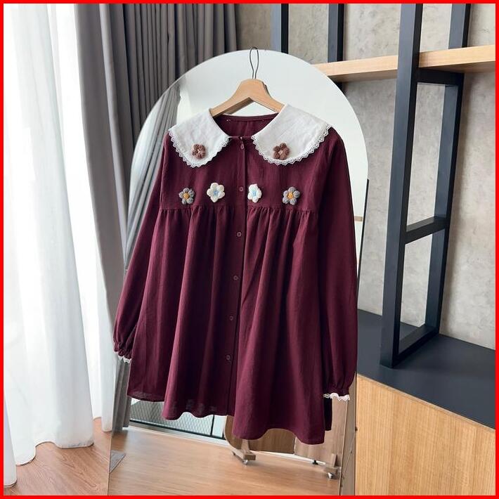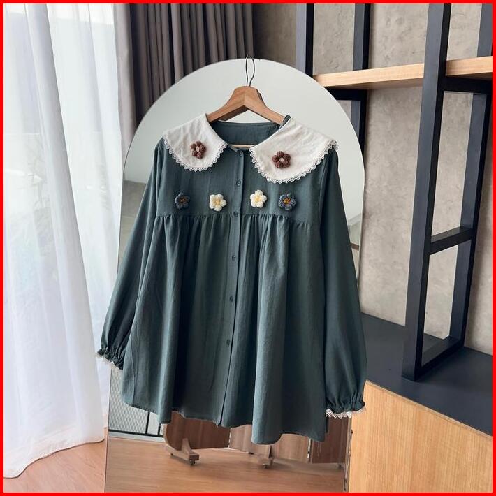 By.hana 470 Linen Shirt Floral Crochet Baju Atasan Panjang Wanita Oversize Variasi Motif