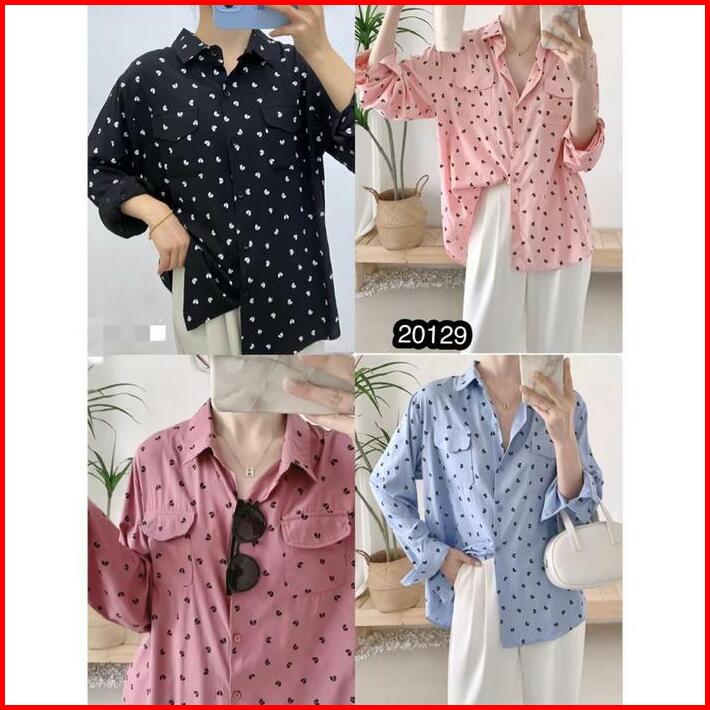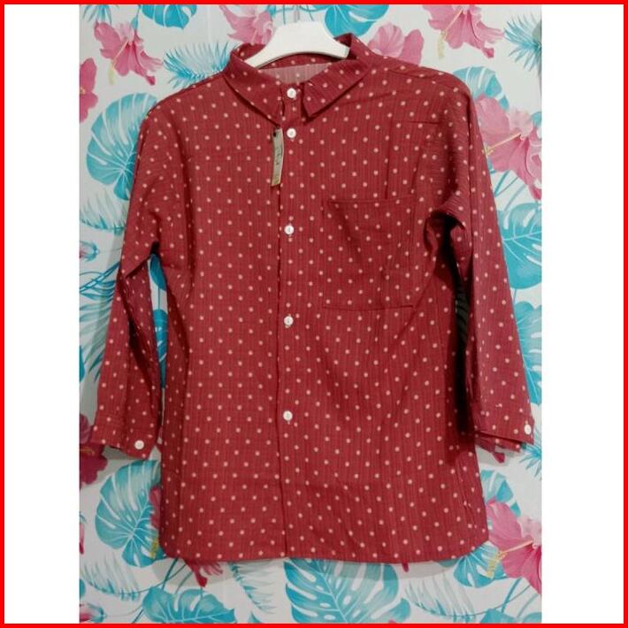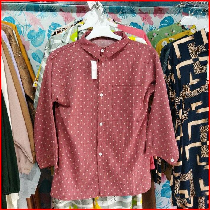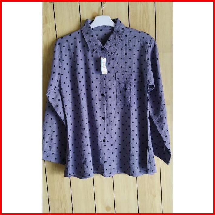 Kemeja Atasan Polkadot Crinkle Airflow Baju Kancing Panjang Wanita