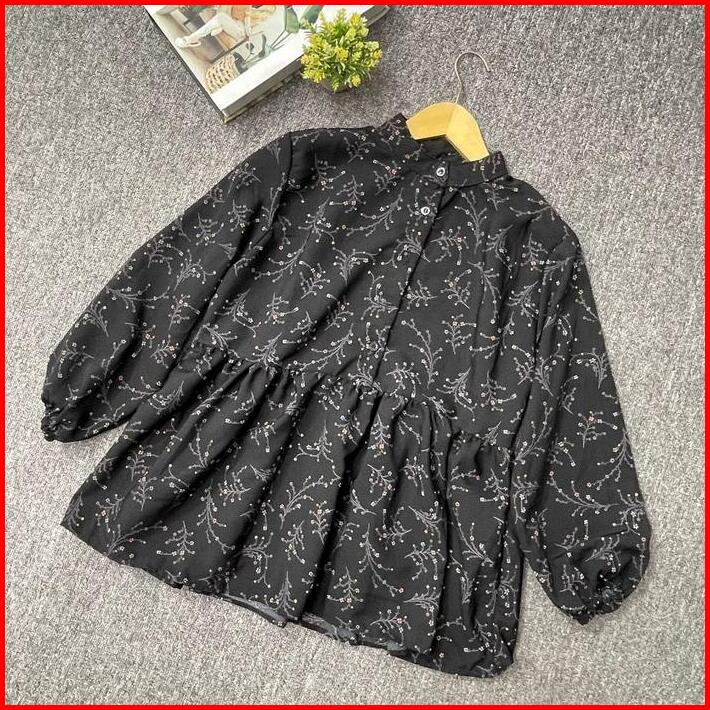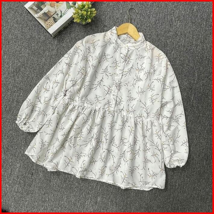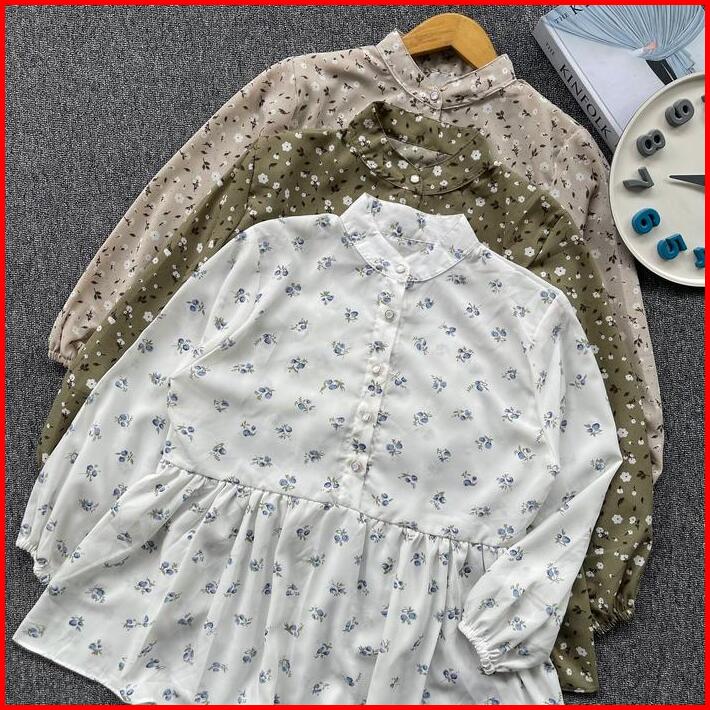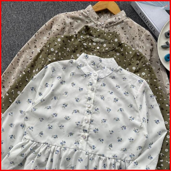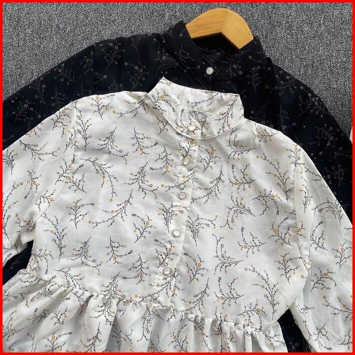 Raisha Blouse Vintage Korean Style Baju Atasan Wanita Korean Style Motif Bunga Katun Panjang Casual Cewek Dewasa