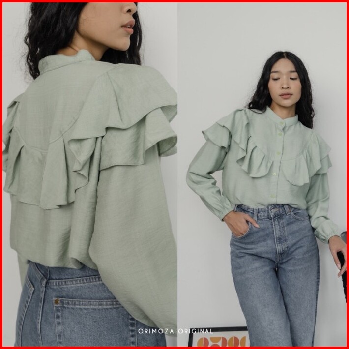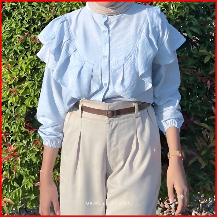 Blouse Wanita Ruffle Blouse Wanita Korean Style Baju Atasan Wanita Terbaru Kemeja Wanita