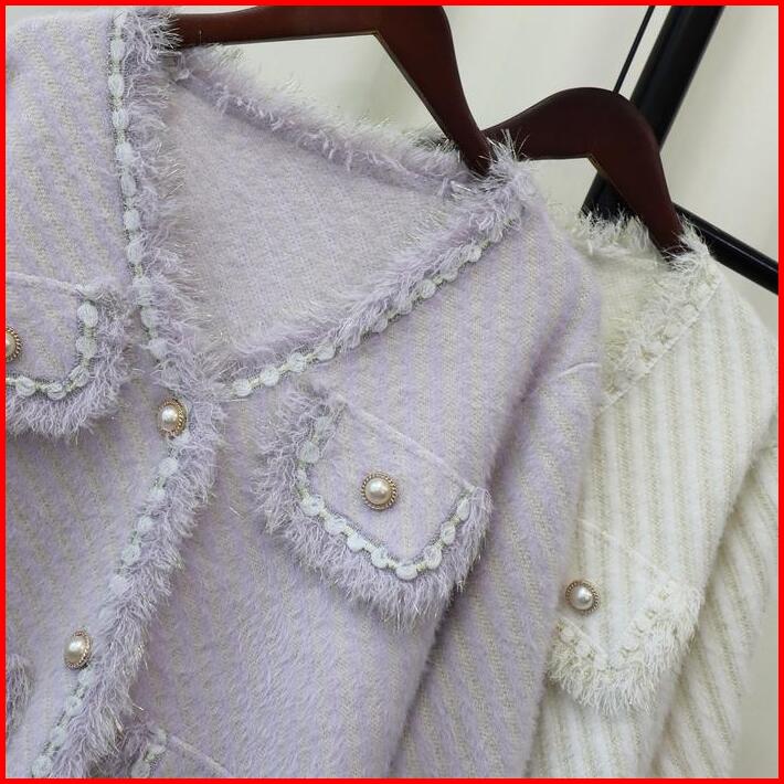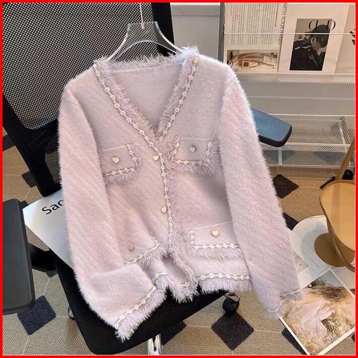 Markas Fashion99 Cardigan Blazer Bulu Halus Sweater Stripe Kancing Love Renda Atasan Outer Rajut Wanita Knitwear 1088 Ba