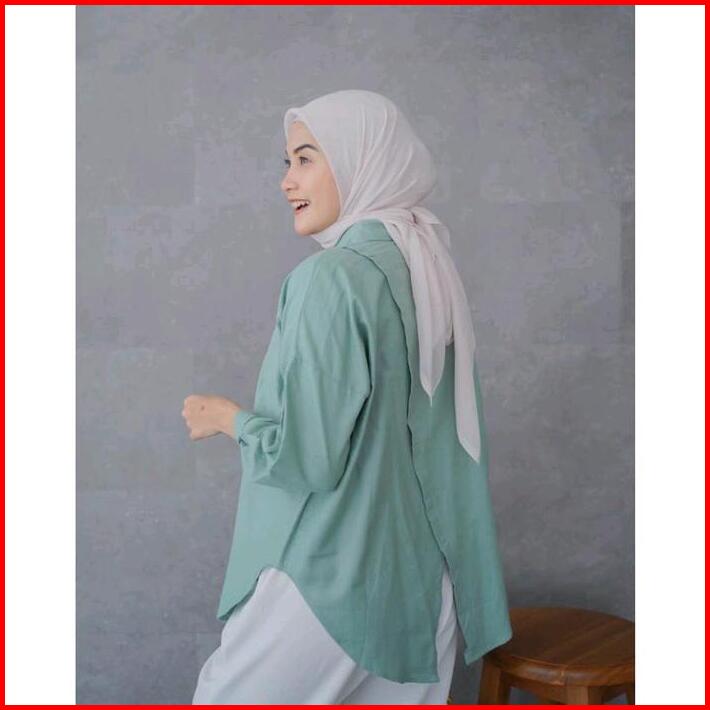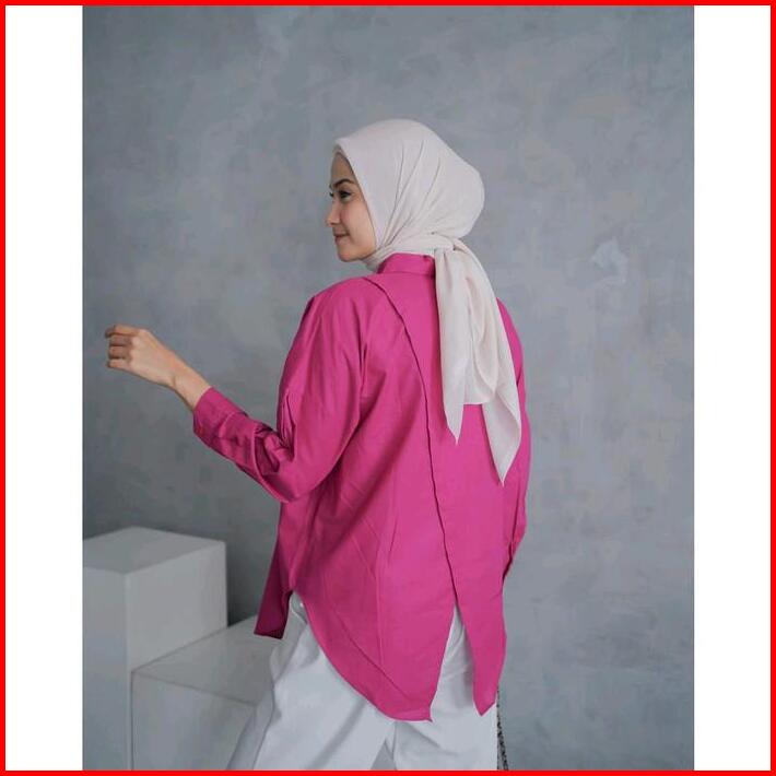 Nhelka Shirt Linen Kemeja Oversize Belah Belakang Polos Santai Baju Fit Panjang Wanita Atasan Katun Casual Cewek