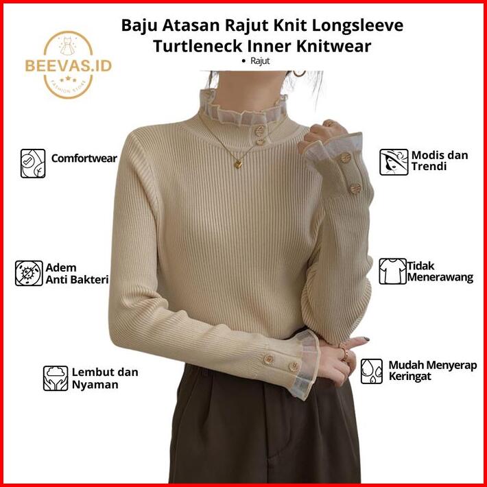 Beevas.id Bj1544 Pakaian Wanita Baju Atasan Lengan Panjang Rajut Inner Knit Longsleeve Turtleneck Inner Crop Knitwear