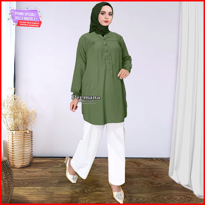 Baju Atasan Wanita Blouse Army Lengan Panjang Busana Muslim Terbaru