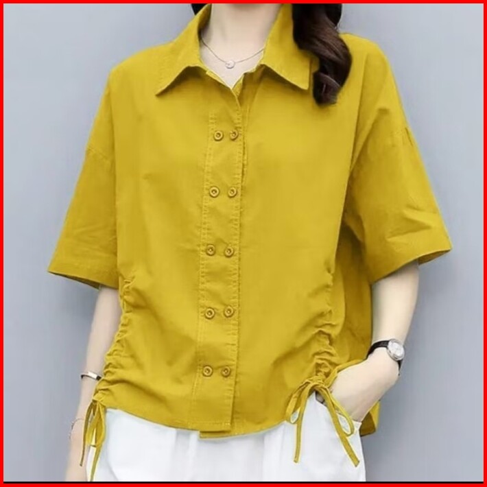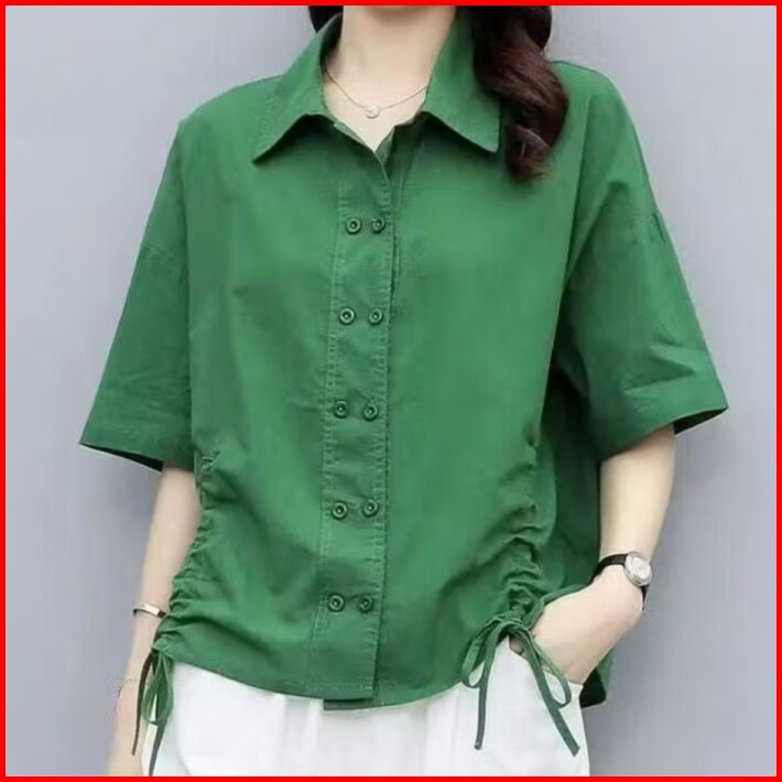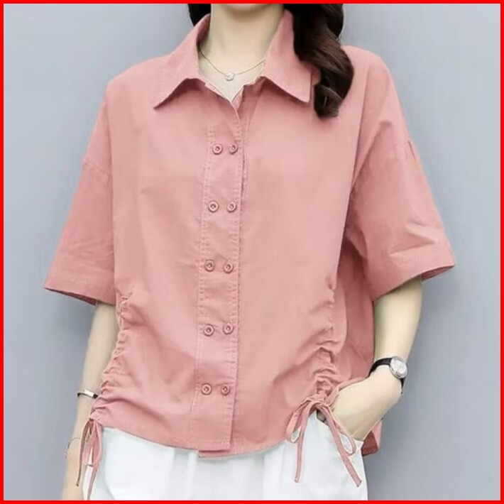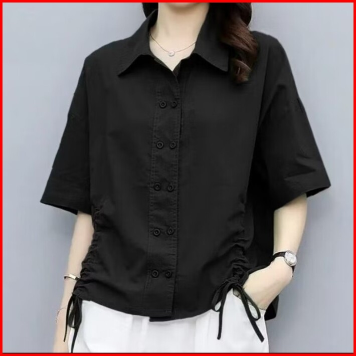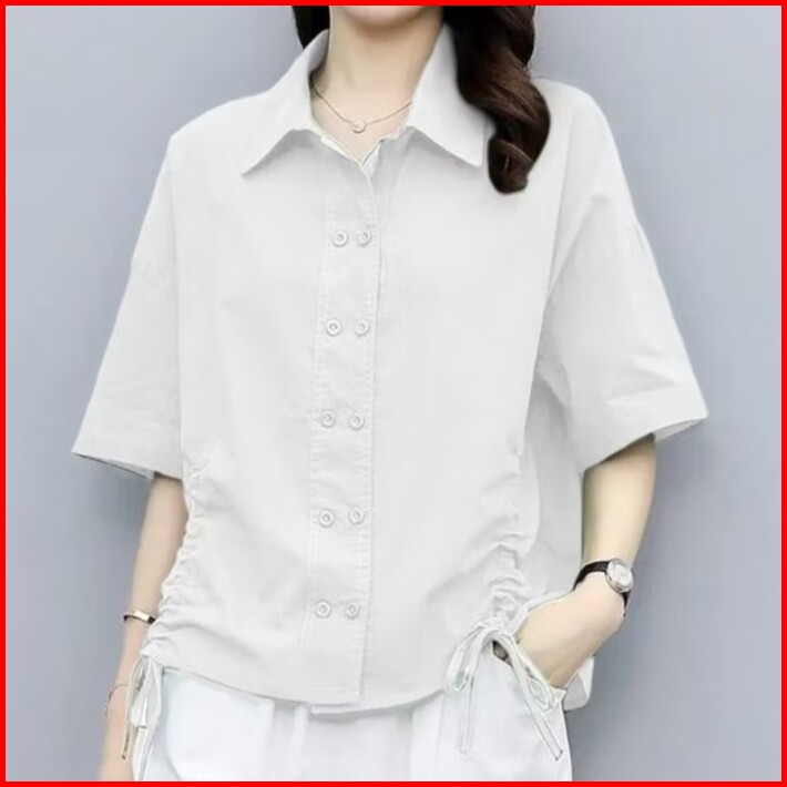 Blouse Baju Atasan Wanita Kerja Style Korea Kemeja Wanita Polos Kombinasi Tali Putih
