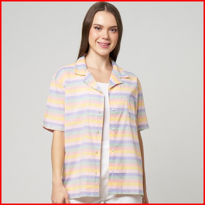 Monellina 50147 Baju Kemeja Atasan Xxl Jumbo Lengan Pendek Wanita