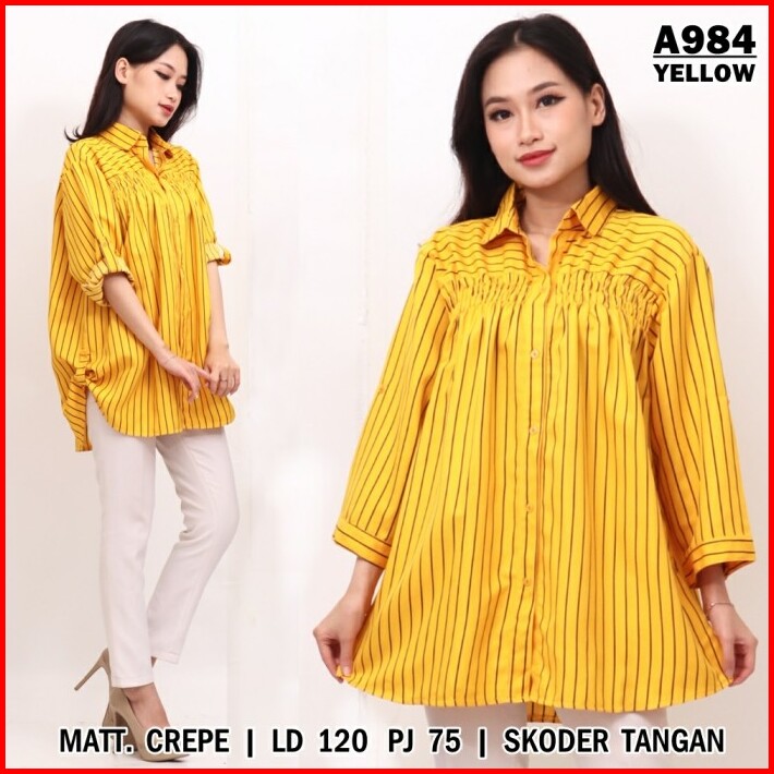 Kemeja Jumbo Magda Yellow Baju Atasan Wanita 0128 Merk Vdk