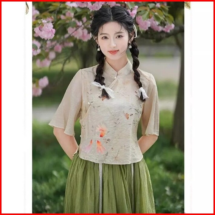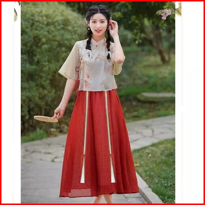 Baju Atasan Dan Bawahan Setelan Set Rok Midi Wanita Traditional Hanfu Chinese Mandarin Imlek Cheongsam Chong Sam Baju Si