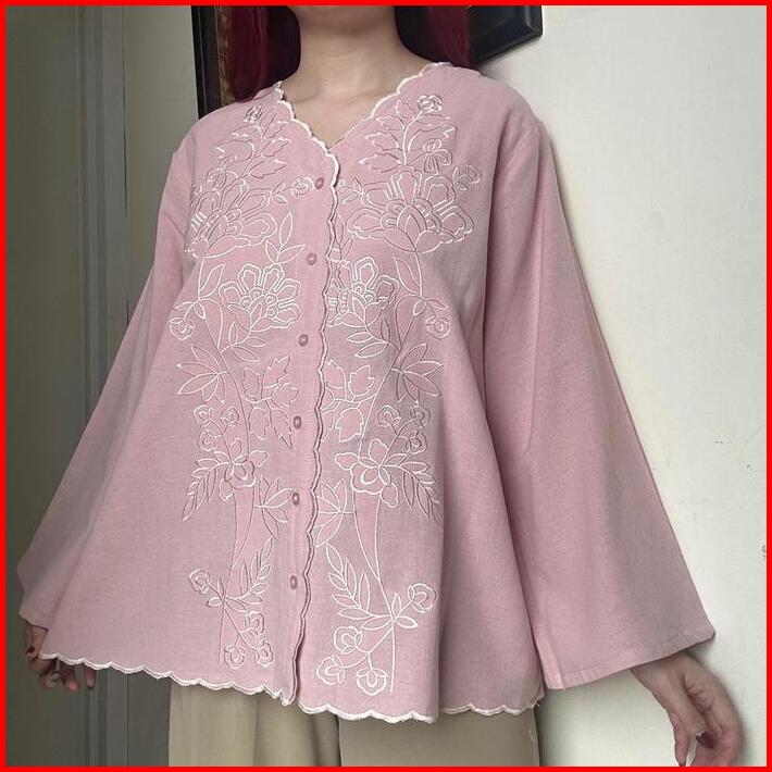 Ravena Top Kemeja Blk Blouse Cardigan Outer Atasan Linen Bordir Korean Style Wanita By Biel The Label Panjang Baju