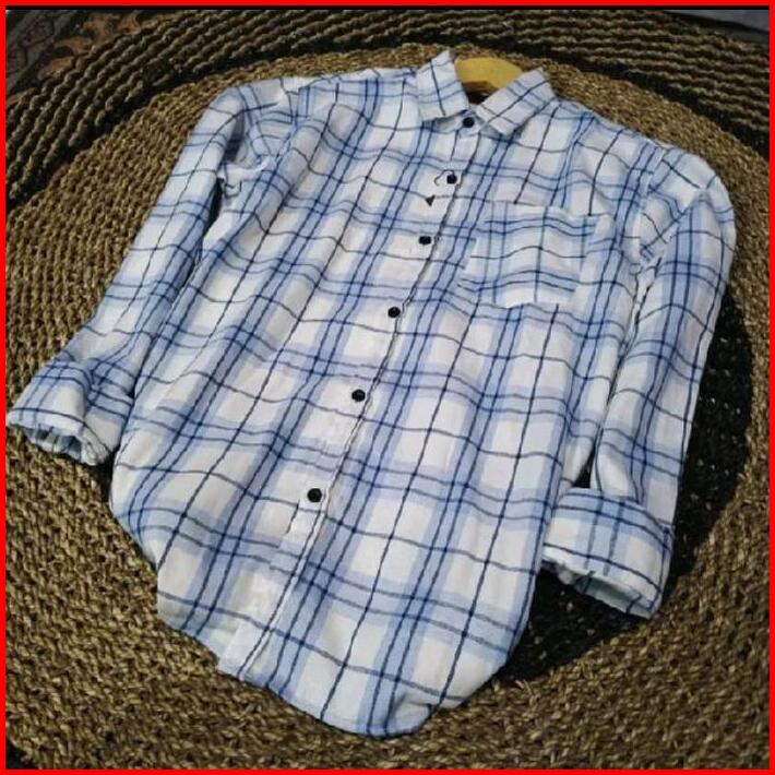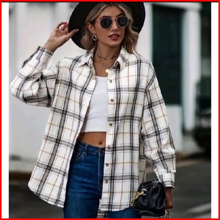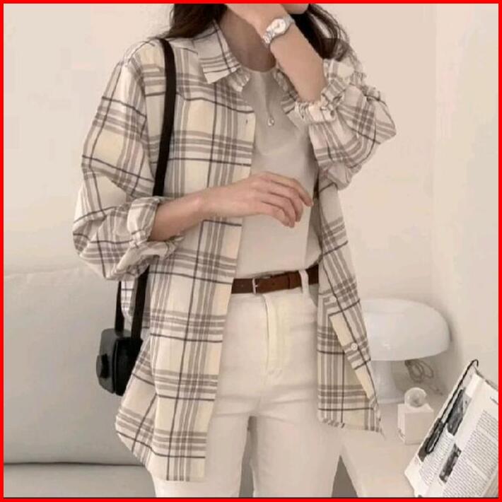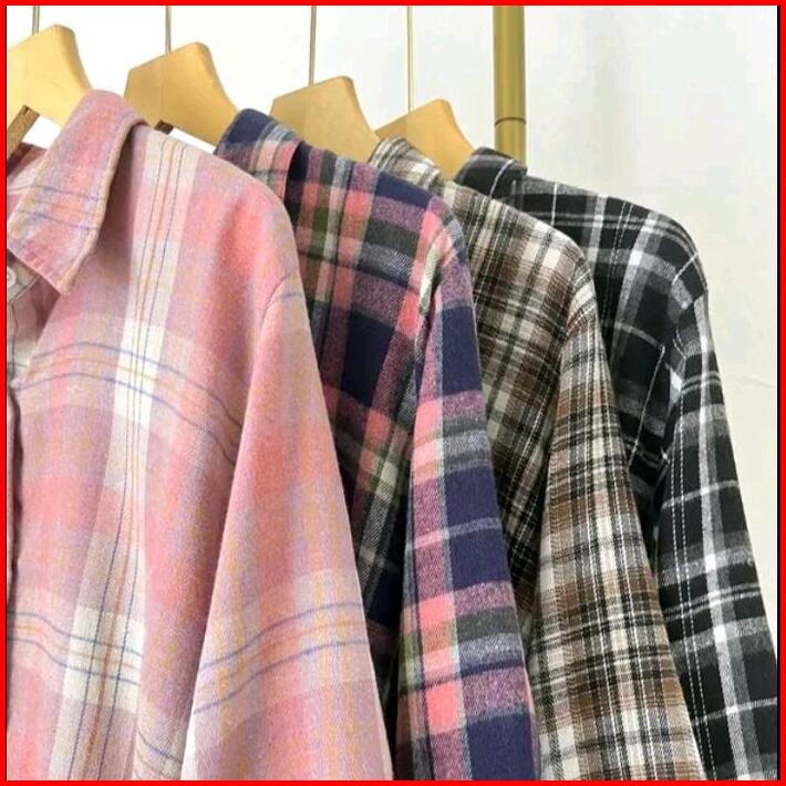 Atasan Wanita Kekinian Kemeja Flanel Lengan Panjang Kotak Casual Baju Cewek Lembut Nyaman