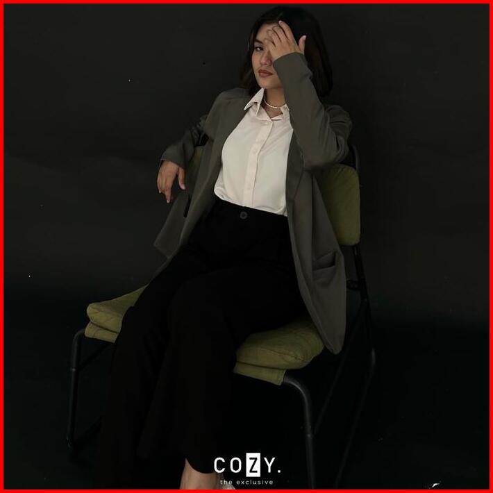 Sivali Cozy La Reunion Blazer Oversized Reguler Blazer Atasan Wanita Grey Casual Panjang Baju Basic Light