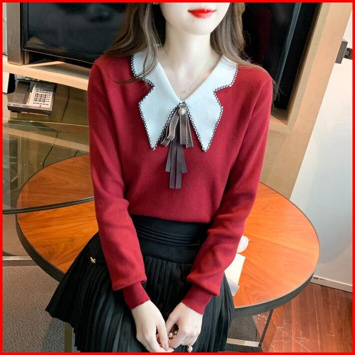 Ajw Rap Atasan Wanita Ribbon Collar Knit Premium Baju Cewek Kekinian Ribbon Collar Kekinian Atasan Remaja Ribbon Collar
