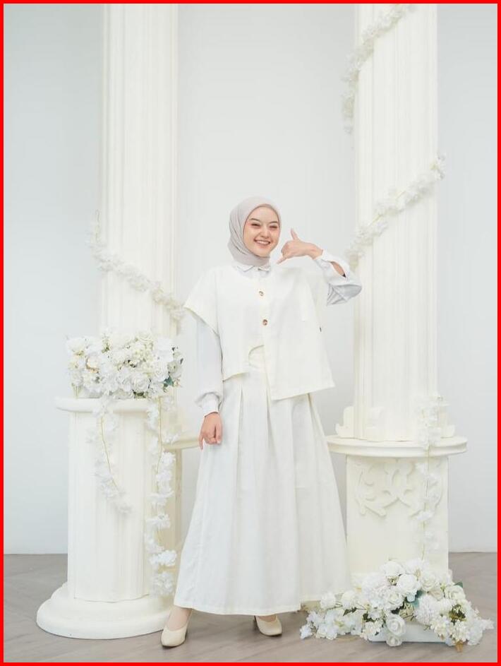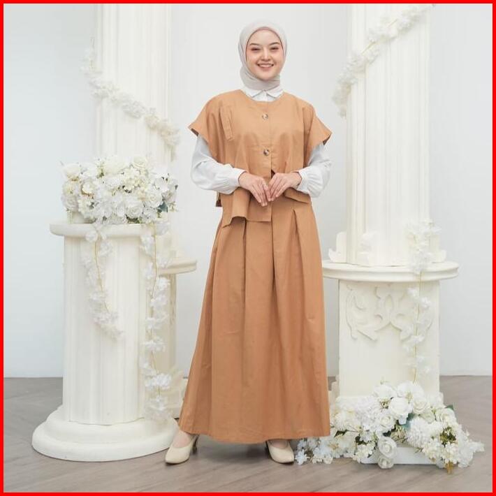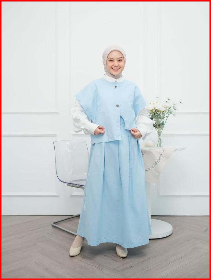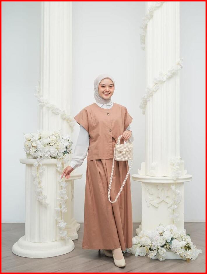 Kimmy Vest One Set Rok Hijab Style-rok Dan Atasan Wanita Muslim One Set Rok Katun Linen Korean Style Setelan Baju Remaja