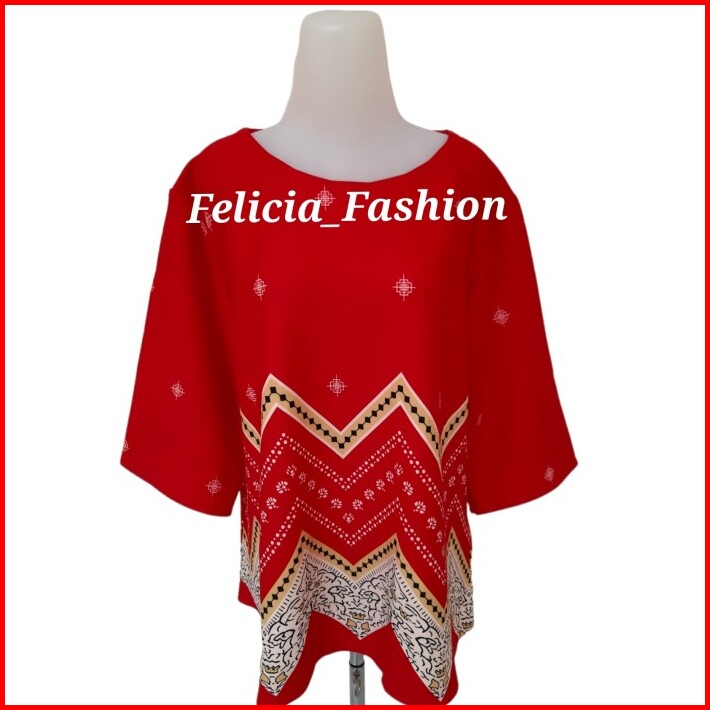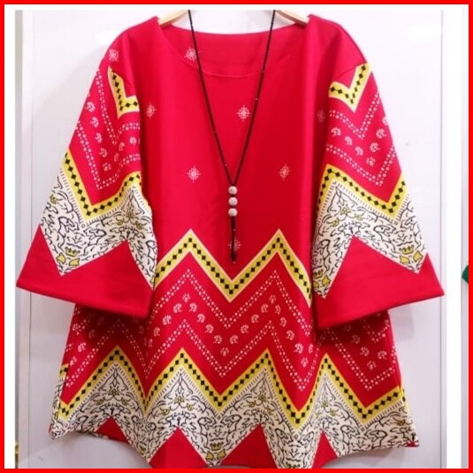Baju Atasan Wanita Jumbo Blouse Scuba Premium Big Size Motif Batik
