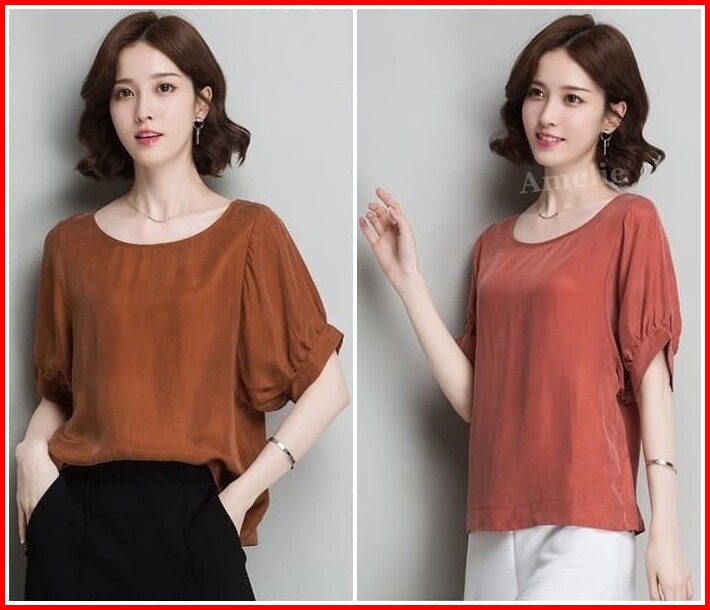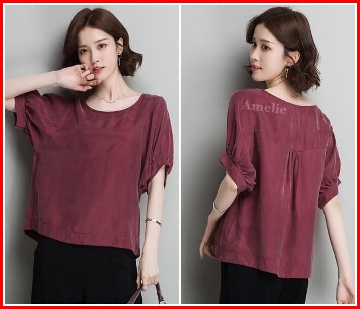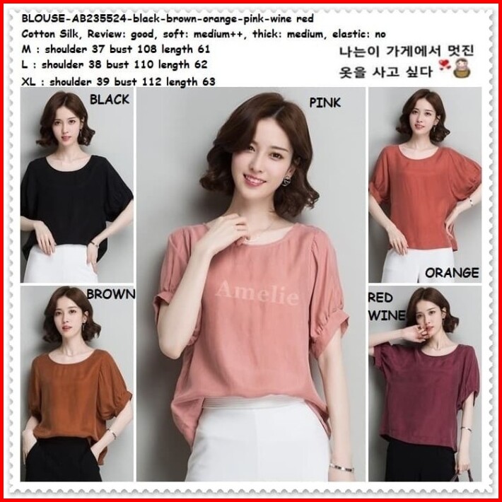 Baju Atasan Wanita Blouse Korea Import Ab235524 Pink Black Hitam Jumbo